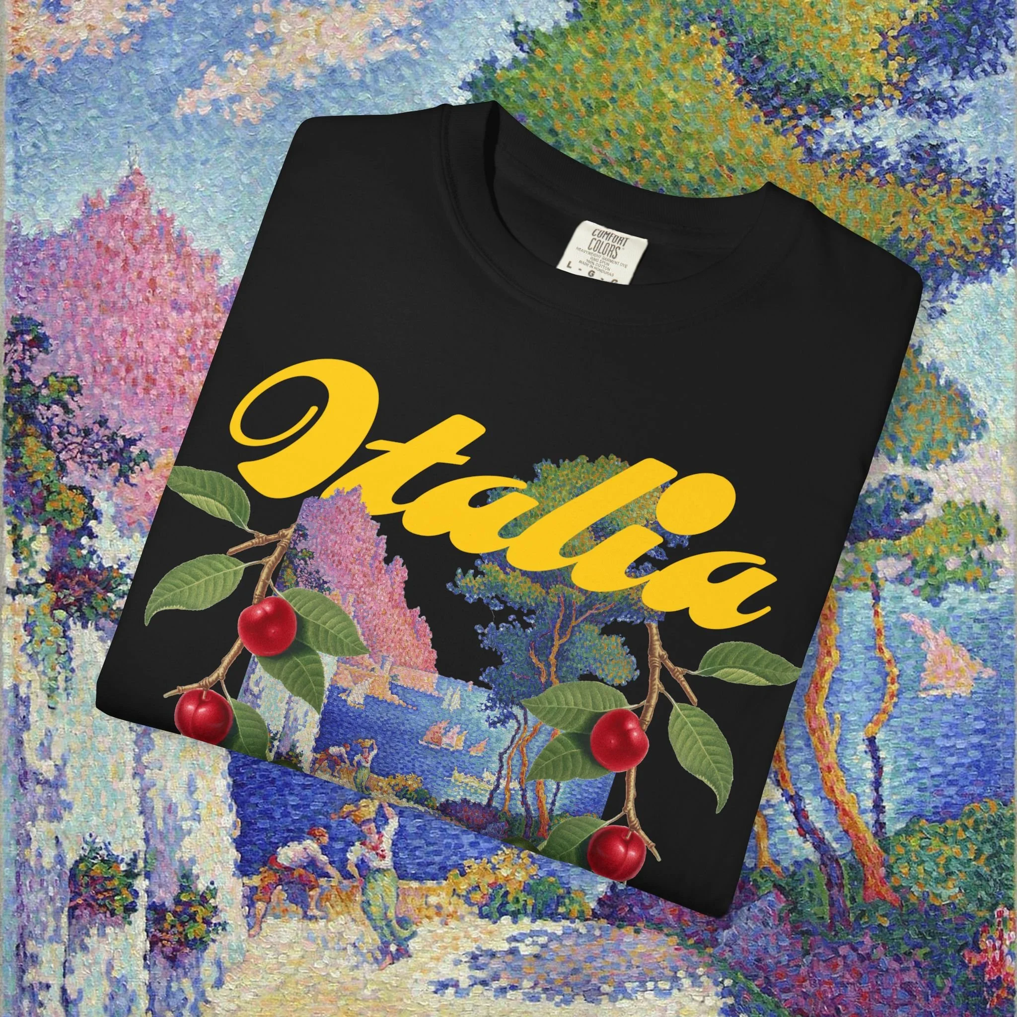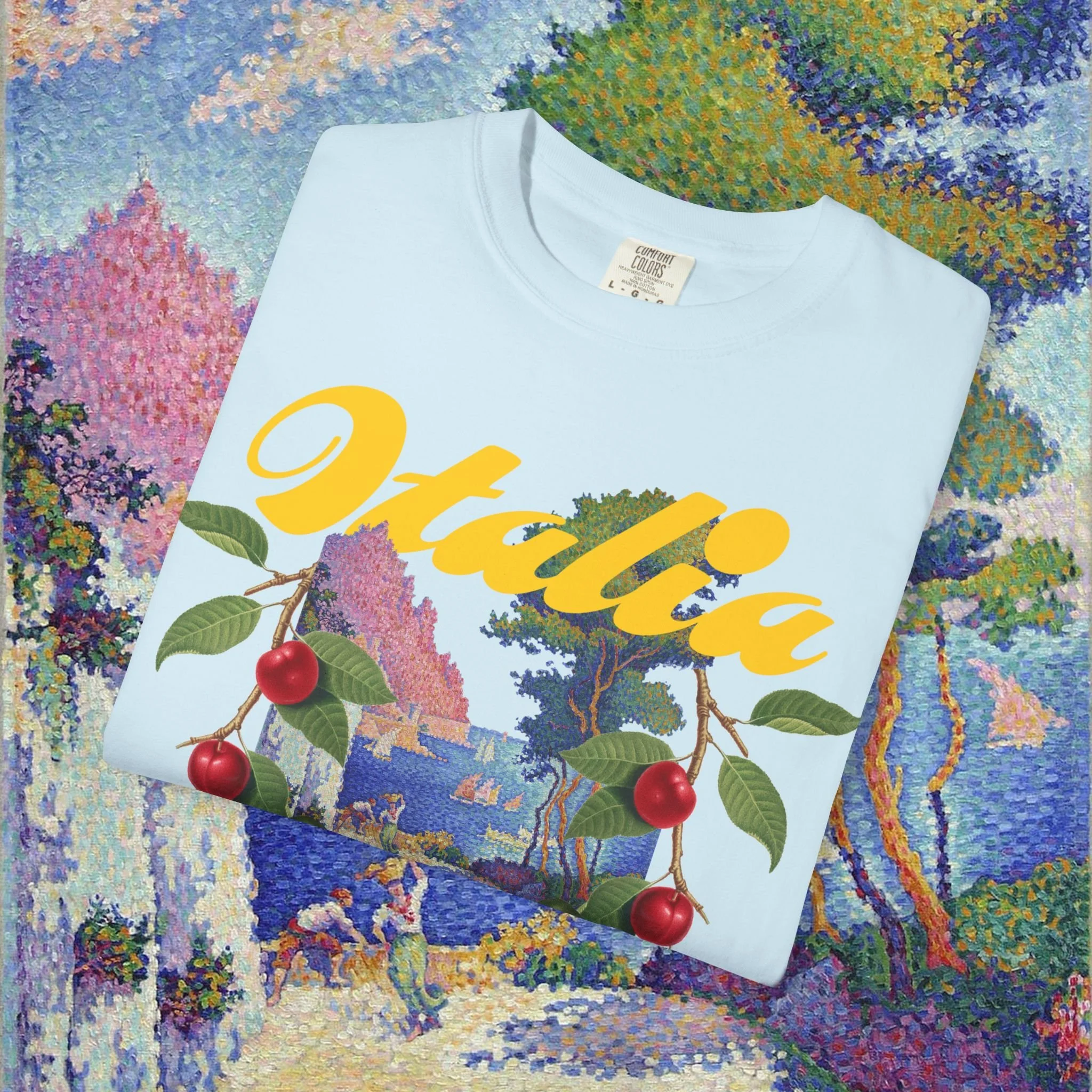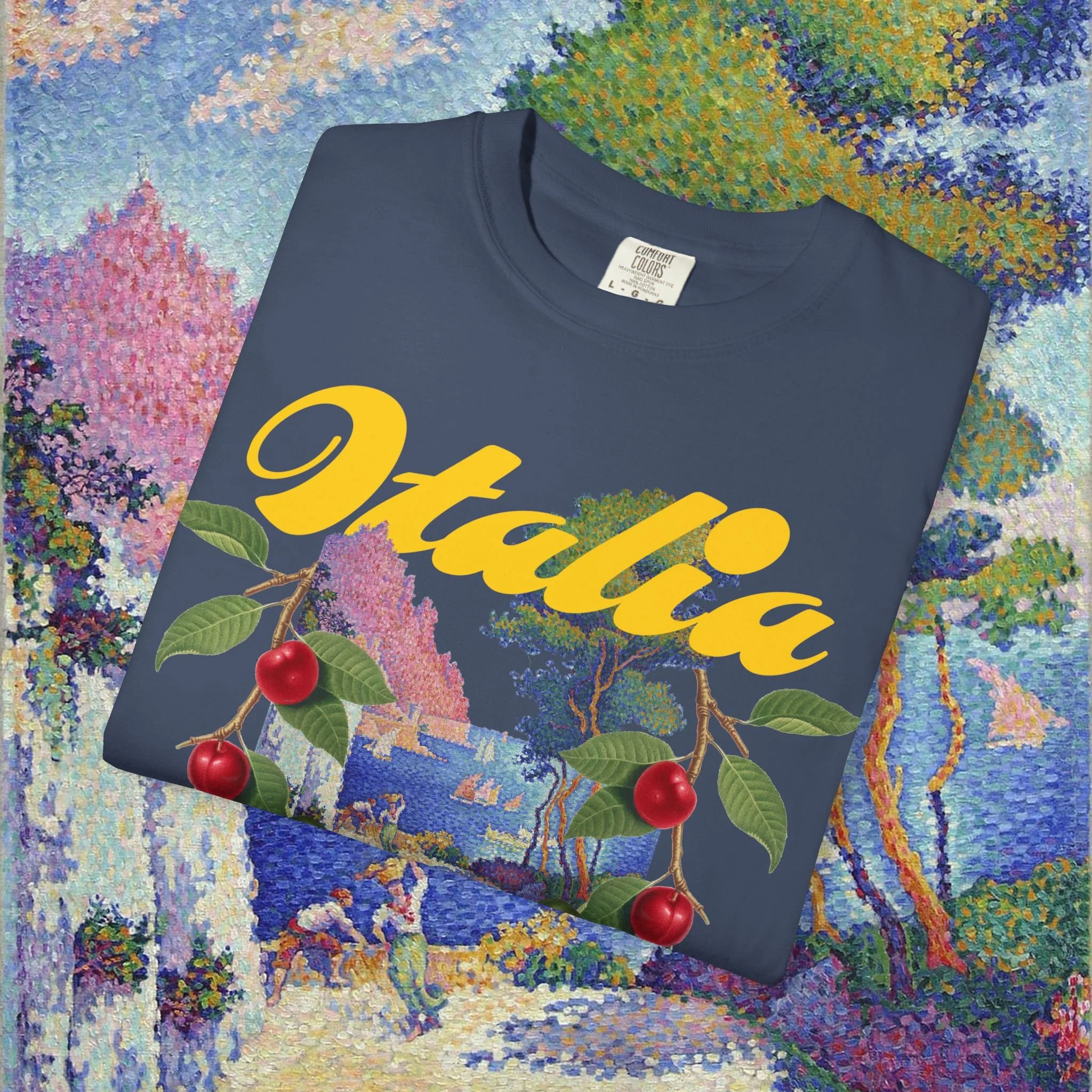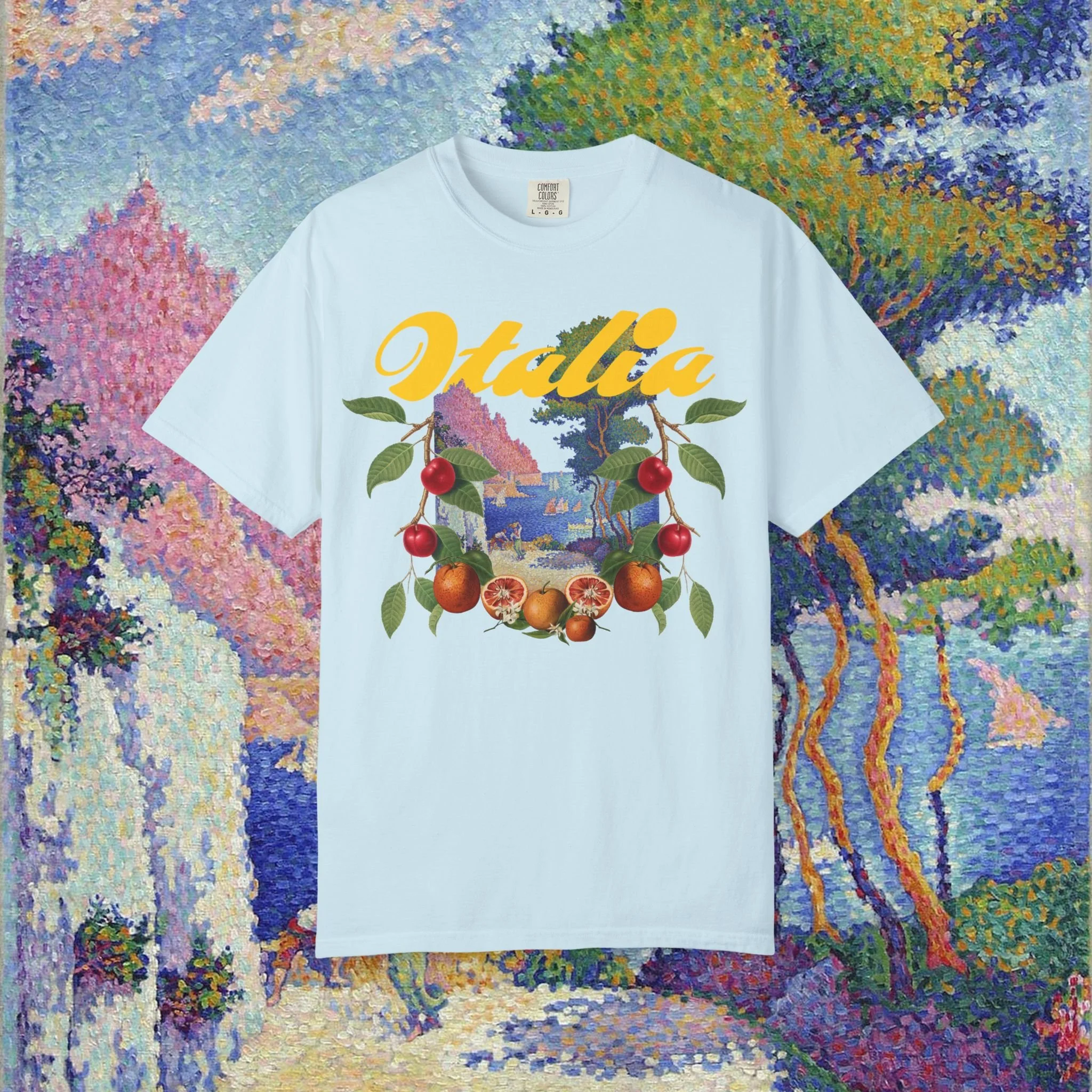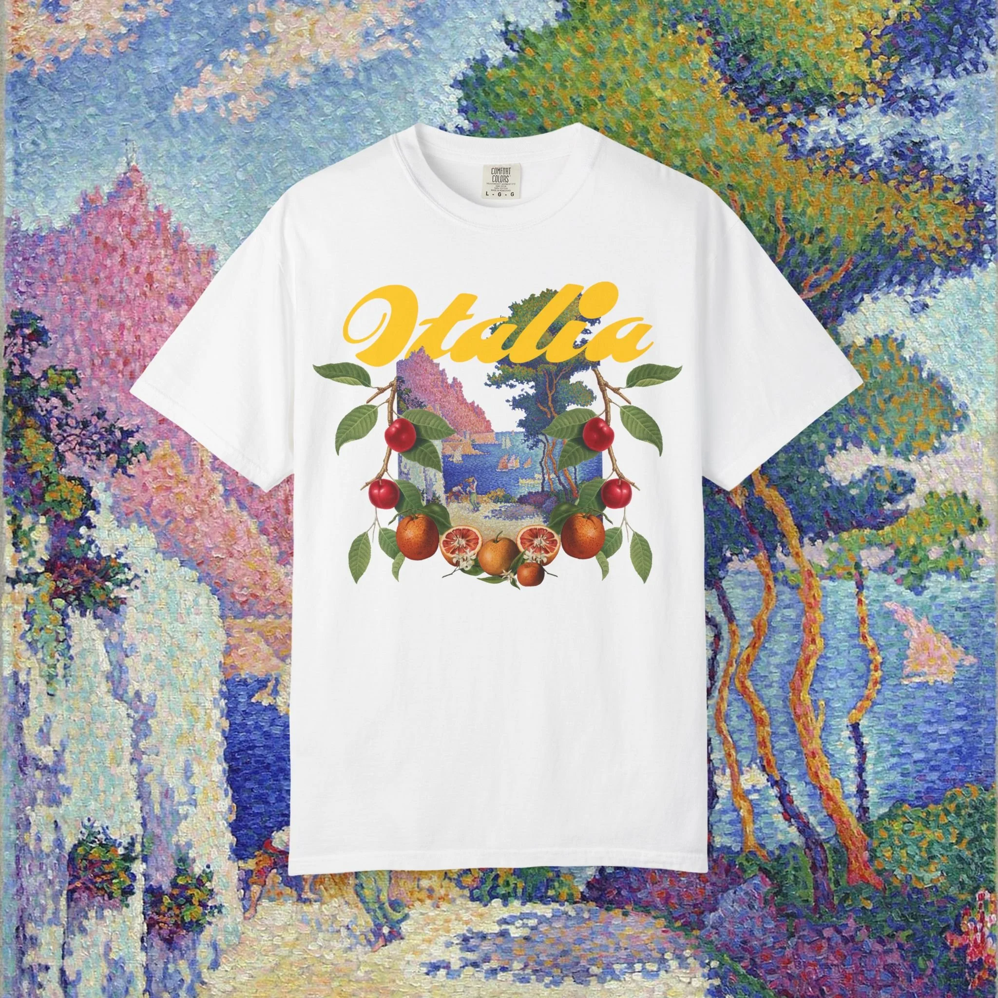 This cute travel shirt with an oil painting design by Paul Signac exudes Mediterranean summer vibes. Perfect for those who love bold and artistic designs, this shirt is ideal for summer outings and vacations. Relevant for those who are looking for a unique and stylish addition to their wardrobe, perfect for casual settings and leisure wear, especially during summer holidays. Product features - Side seams for structural support - Ribbed knit collar for shape retention - Shoulder tape for stability - Sleeve printing with detailed designs - Made with 100% lightweight Airlume combed and ring-spun cotton Care instructions - Machine wash: cold (max 30C or 90F) - Non-chlorine: bleach as needed - Tumble dry: low heat - Iron, steam or dry: medium heat - Do not dryclean