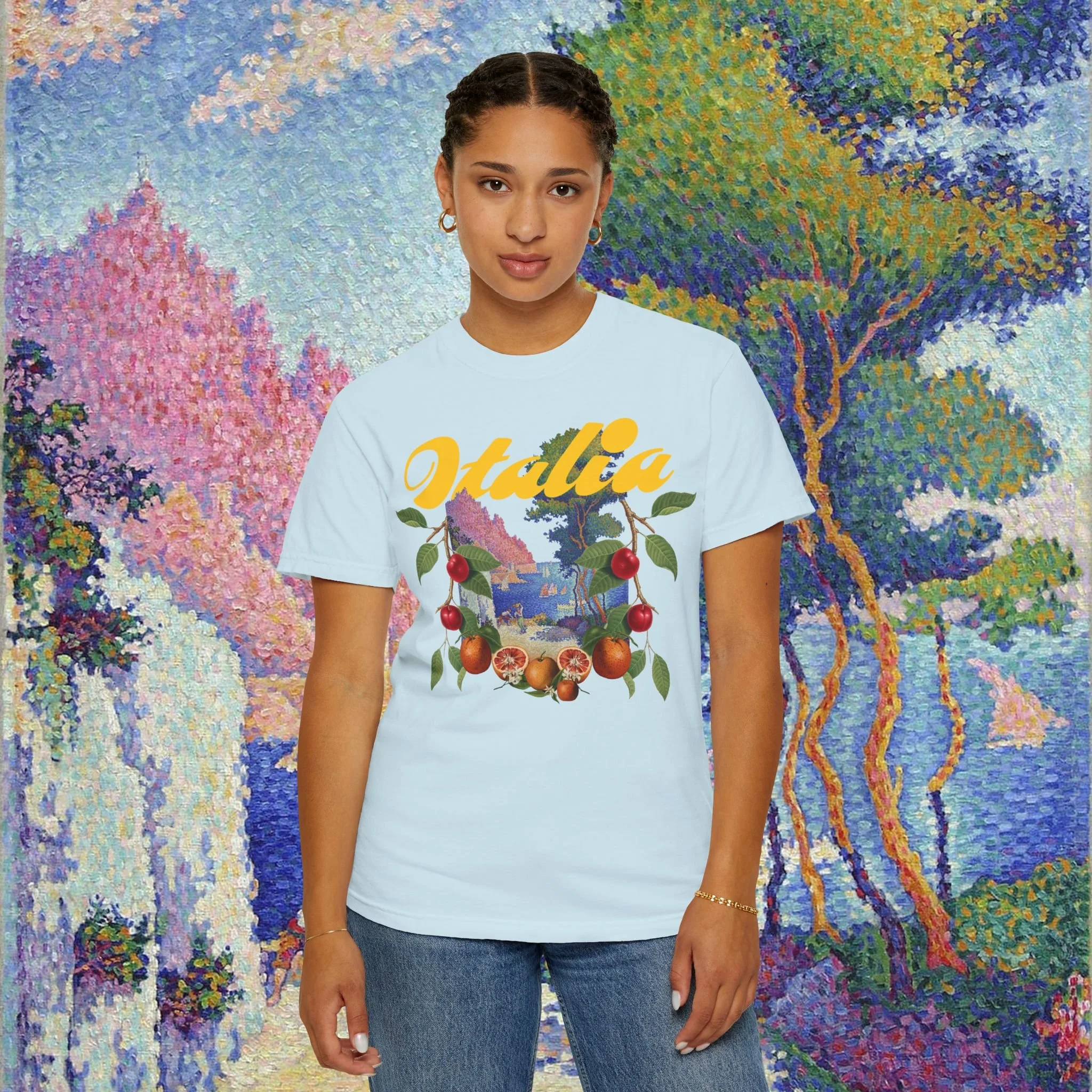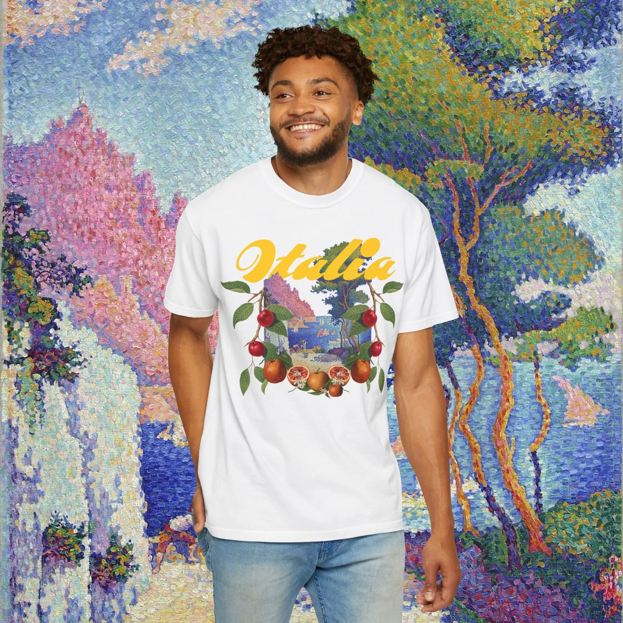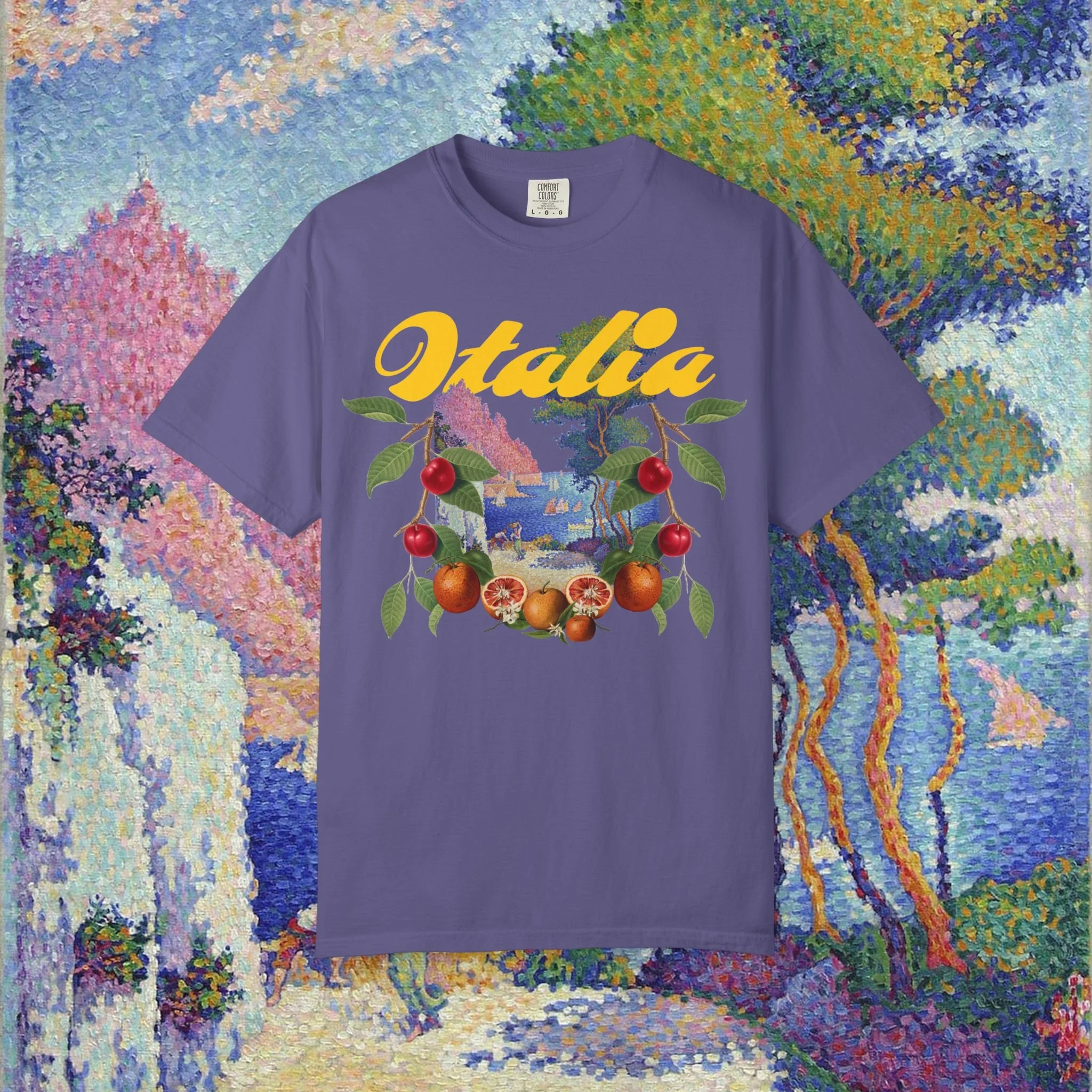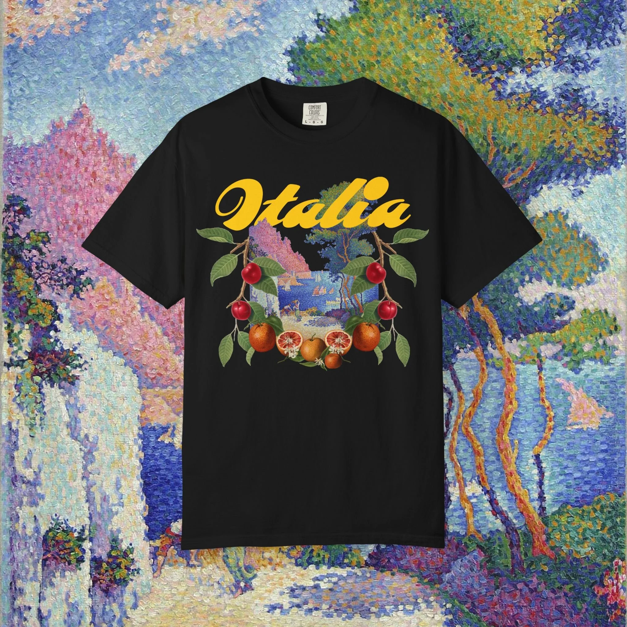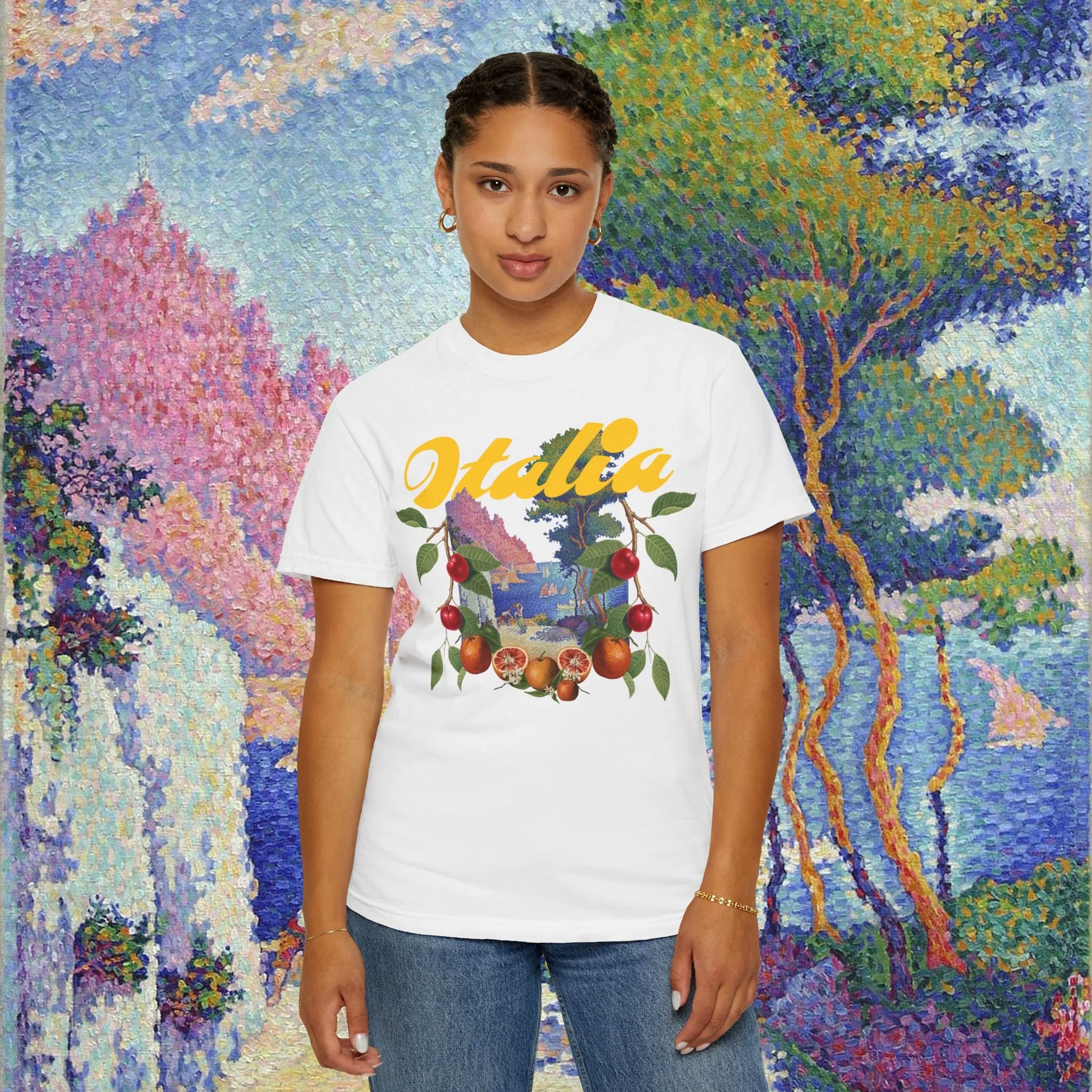 This cute travel shirt with an oil painting design by Paul Signac exudes Mediterranean summer vibes. Perfect for those who love bold and artistic designs, this shirt is ideal for summer outings and vacations. Relevant for those who are looking for a unique and stylish addition to their wardrobe, perfect for casual settings and leisure wear, especially during summer holidays. Product features - Side seams for structural support - Ribbed knit collar for shape retention - Shoulder tape for stability - Sleeve printing with detailed designs - Made with 100% lightweight Airlume combed and ring-spun cotton Care instructions - Machine wash: cold (max 30C or 90F) - Non-chlorine: bleach as needed - Tumble dry: low heat - Iron, steam or dry: medium heat - Do not dryclean