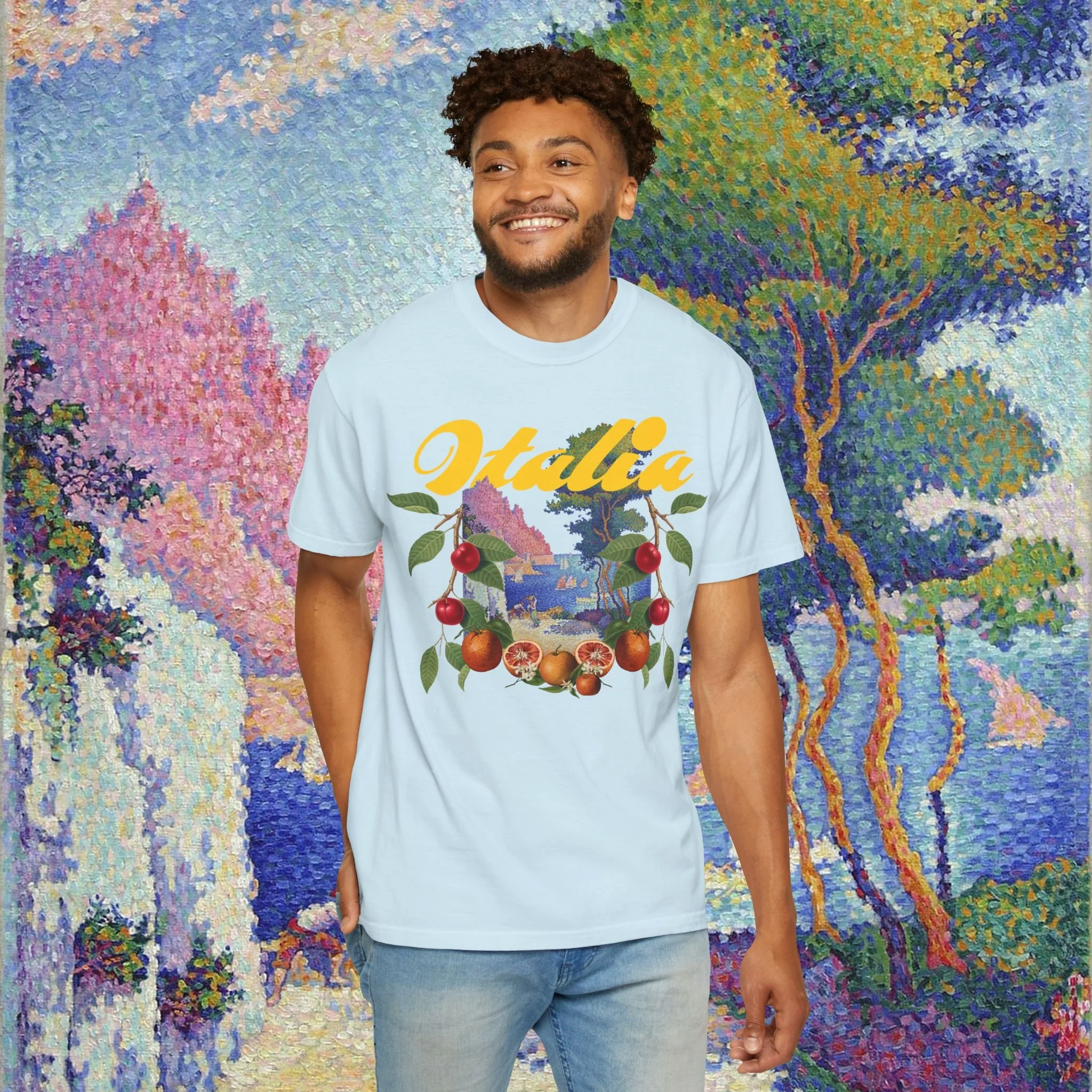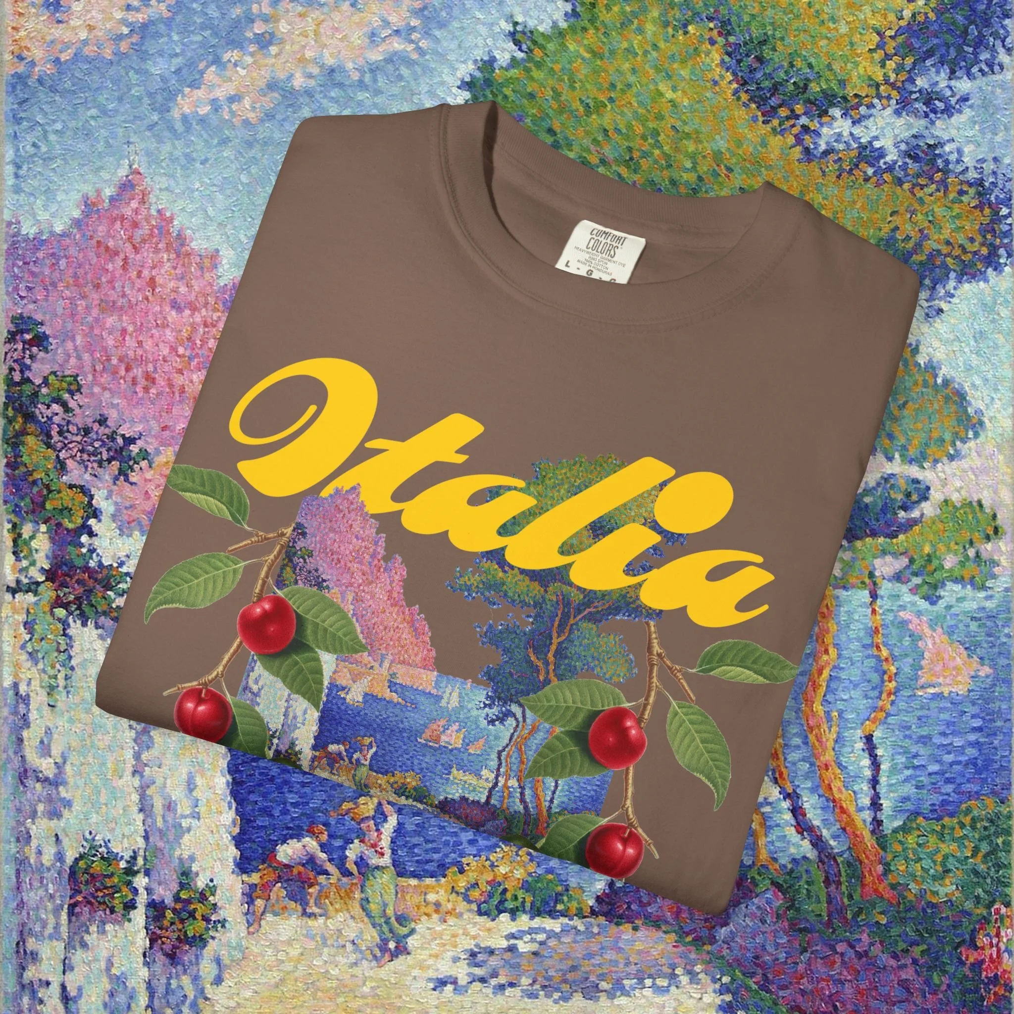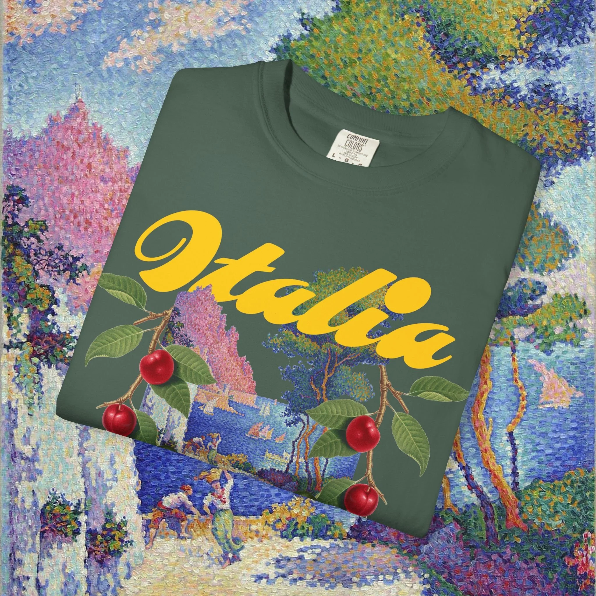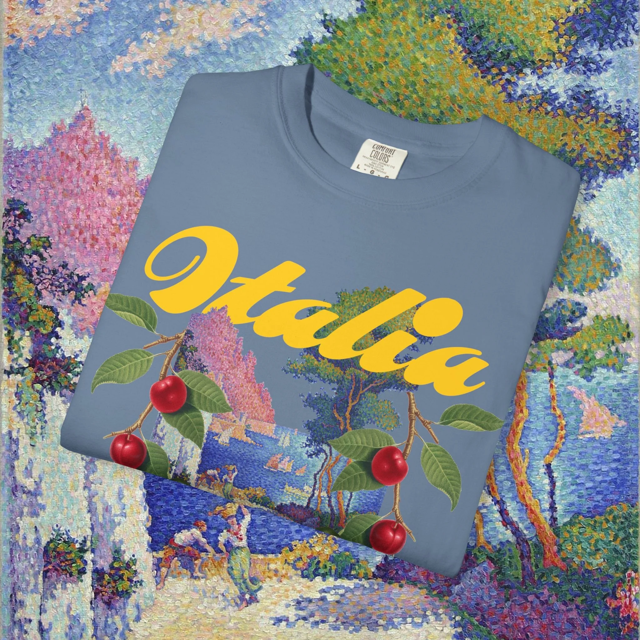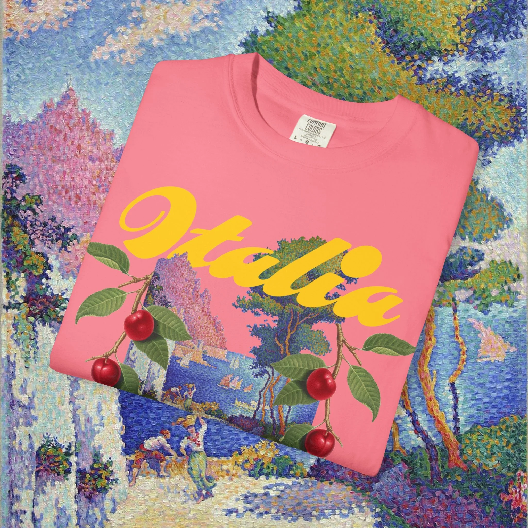 This cute travel shirt with an oil painting design by Paul Signac exudes Mediterranean summer vibes. Perfect for those who love bold and artistic designs, this shirt is ideal for summer outings and vacations. Relevant for those who are looking for a unique and stylish addition to their wardrobe, perfect for casual settings and leisure wear, especially during summer holidays. Product features - Side seams for structural support - Ribbed knit collar for shape retention - Shoulder tape for stability - Sleeve printing with detailed designs - Made with 100% lightweight Airlume combed and ring-spun cotton Care instructions - Machine wash: cold (max 30C or 90F) - Non-chlorine: bleach as needed - Tumble dry: low heat - Iron, steam or dry: medium heat - Do not dryclean