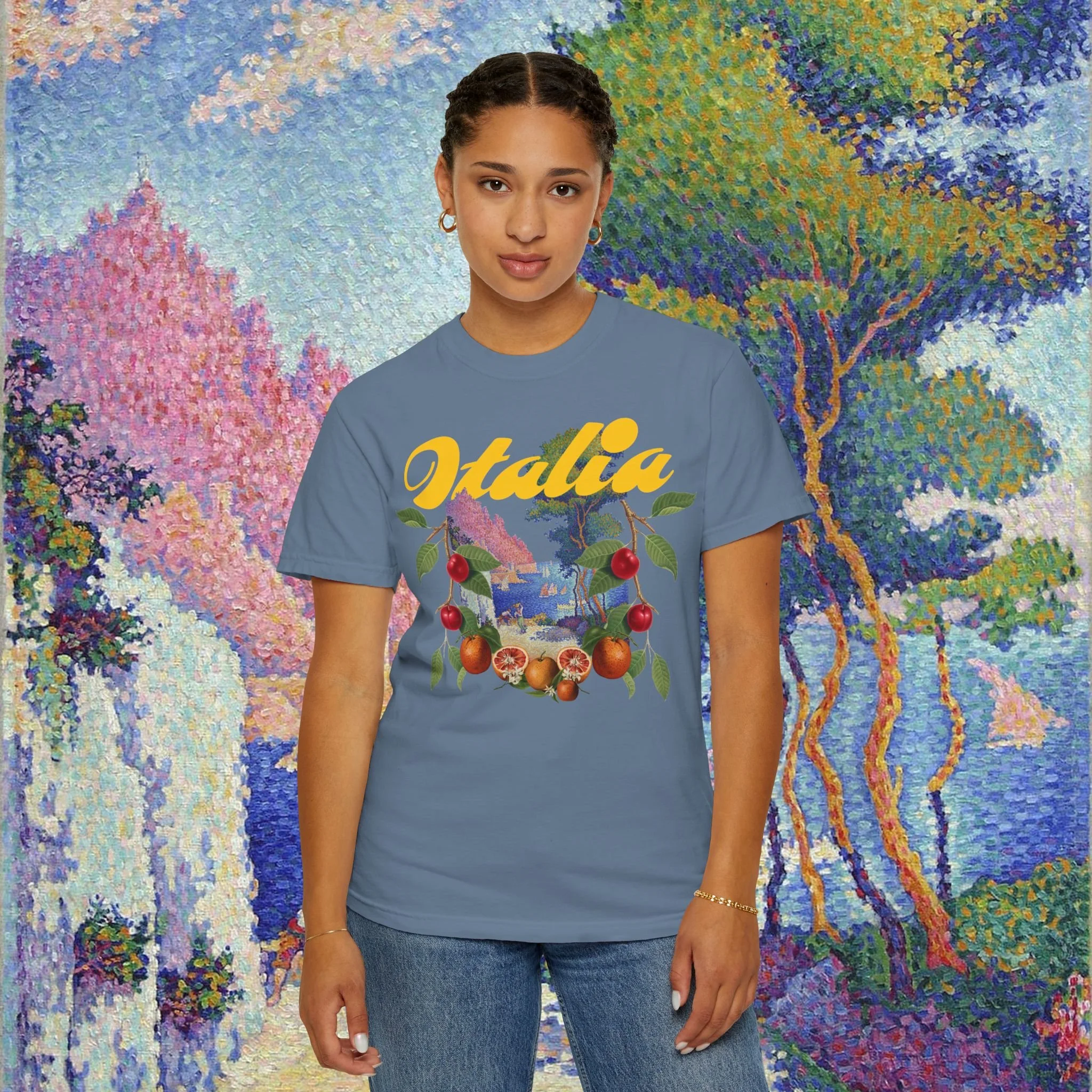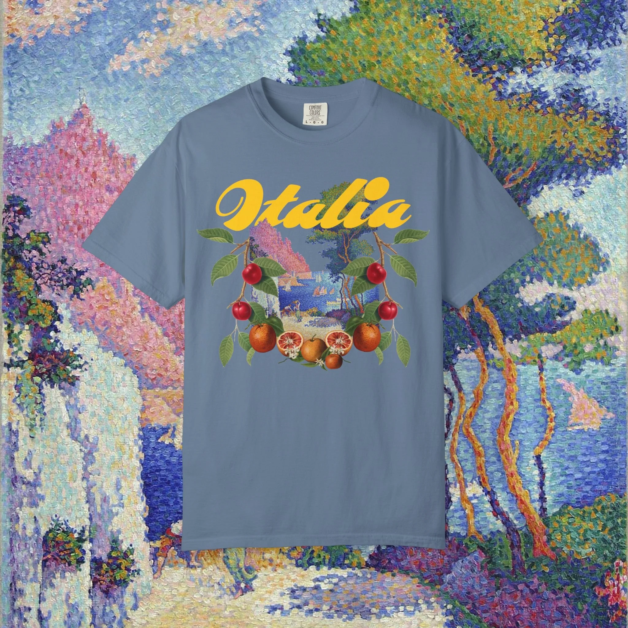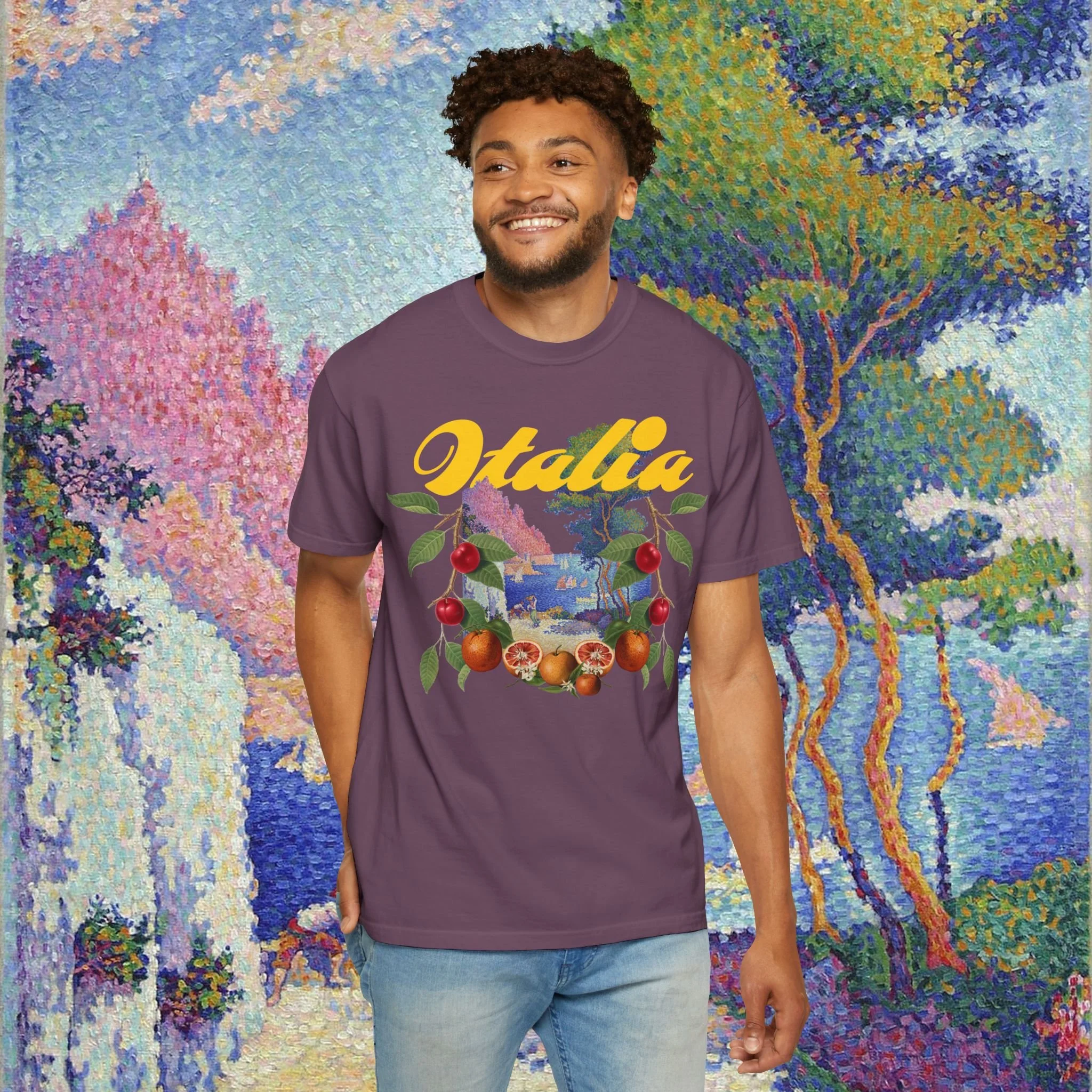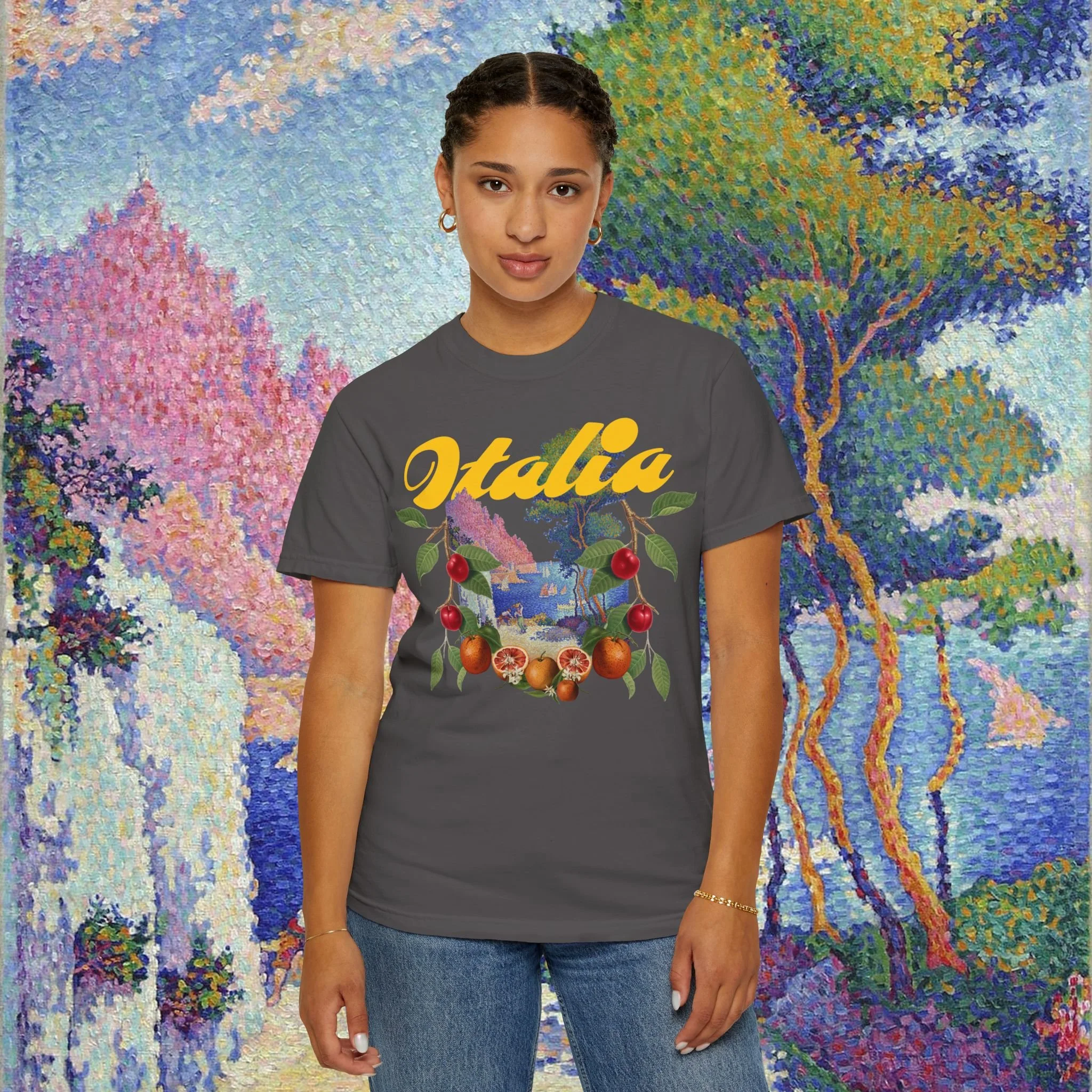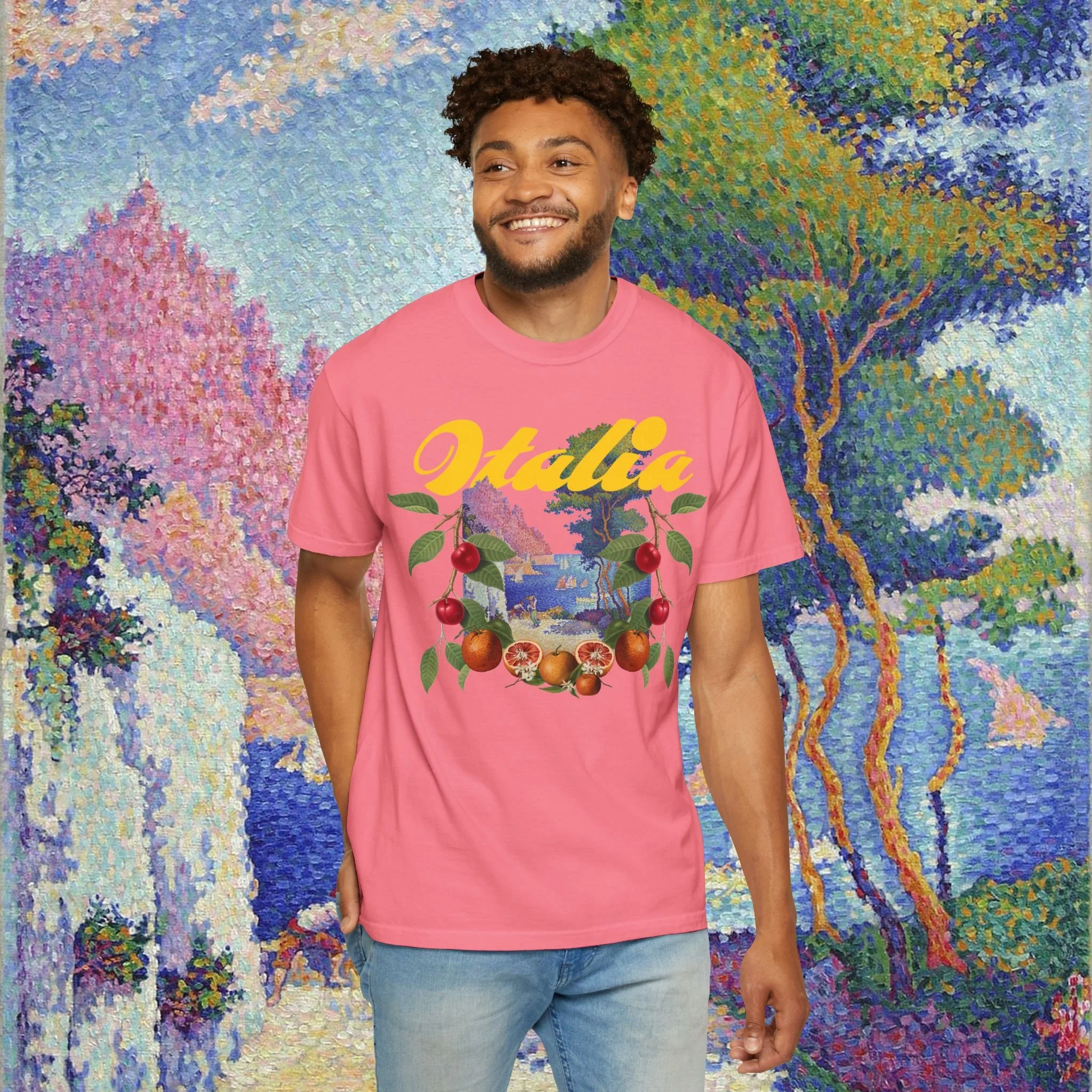 This cute travel shirt with an oil painting design by Paul Signac exudes Mediterranean summer vibes. Perfect for those who love bold and artistic designs, this shirt is ideal for summer outings and vacations. Relevant for those who are looking for a unique and stylish addition to their wardrobe, perfect for casual settings and leisure wear, especially during summer holidays. Product features - Side seams for structural support - Ribbed knit collar for shape retention - Shoulder tape for stability - Sleeve printing with detailed designs - Made with 100% lightweight Airlume combed and ring-spun cotton Care instructions - Machine wash: cold (max 30C or 90F) - Non-chlorine: bleach as needed - Tumble dry: low heat - Iron, steam or dry: medium heat - Do not dryclean