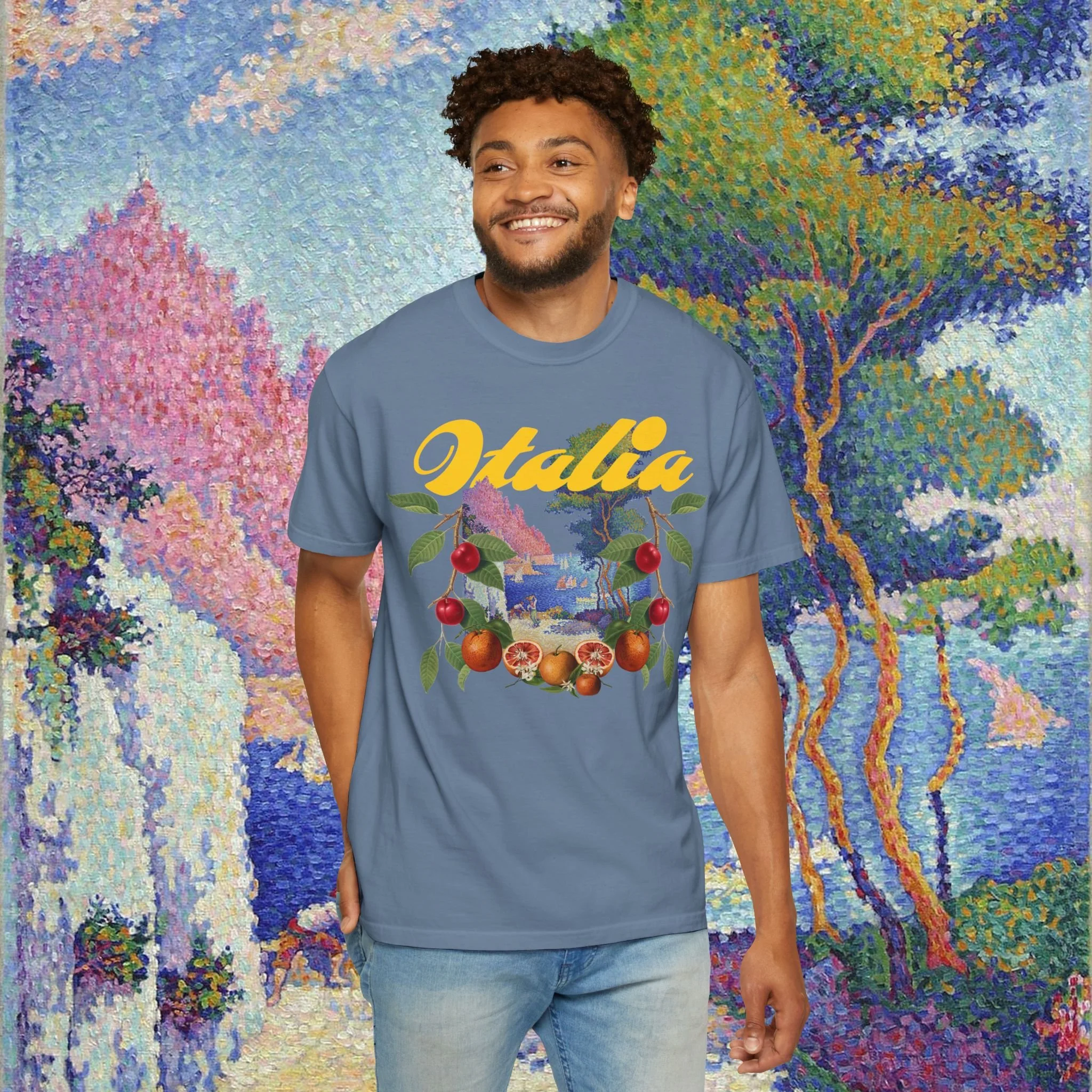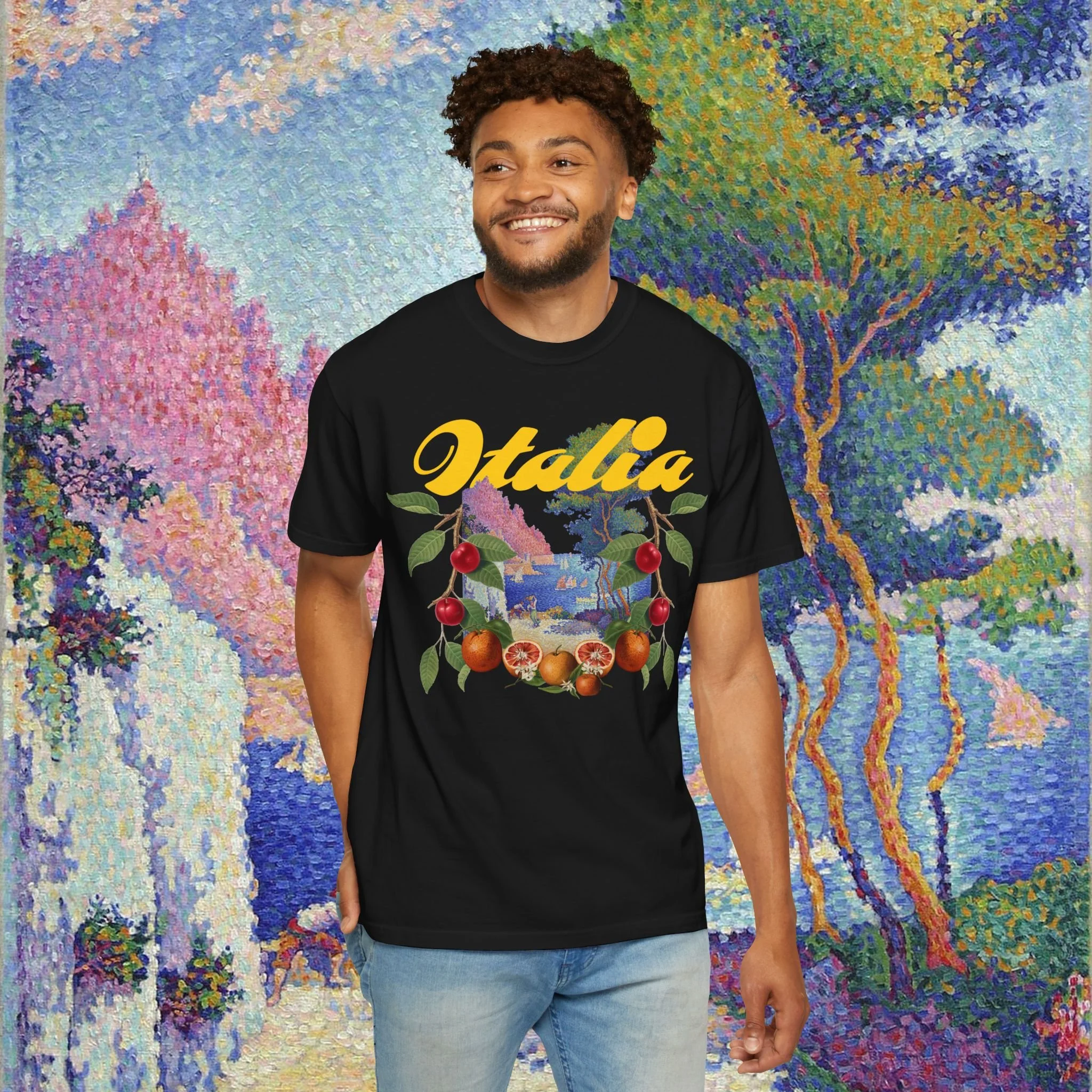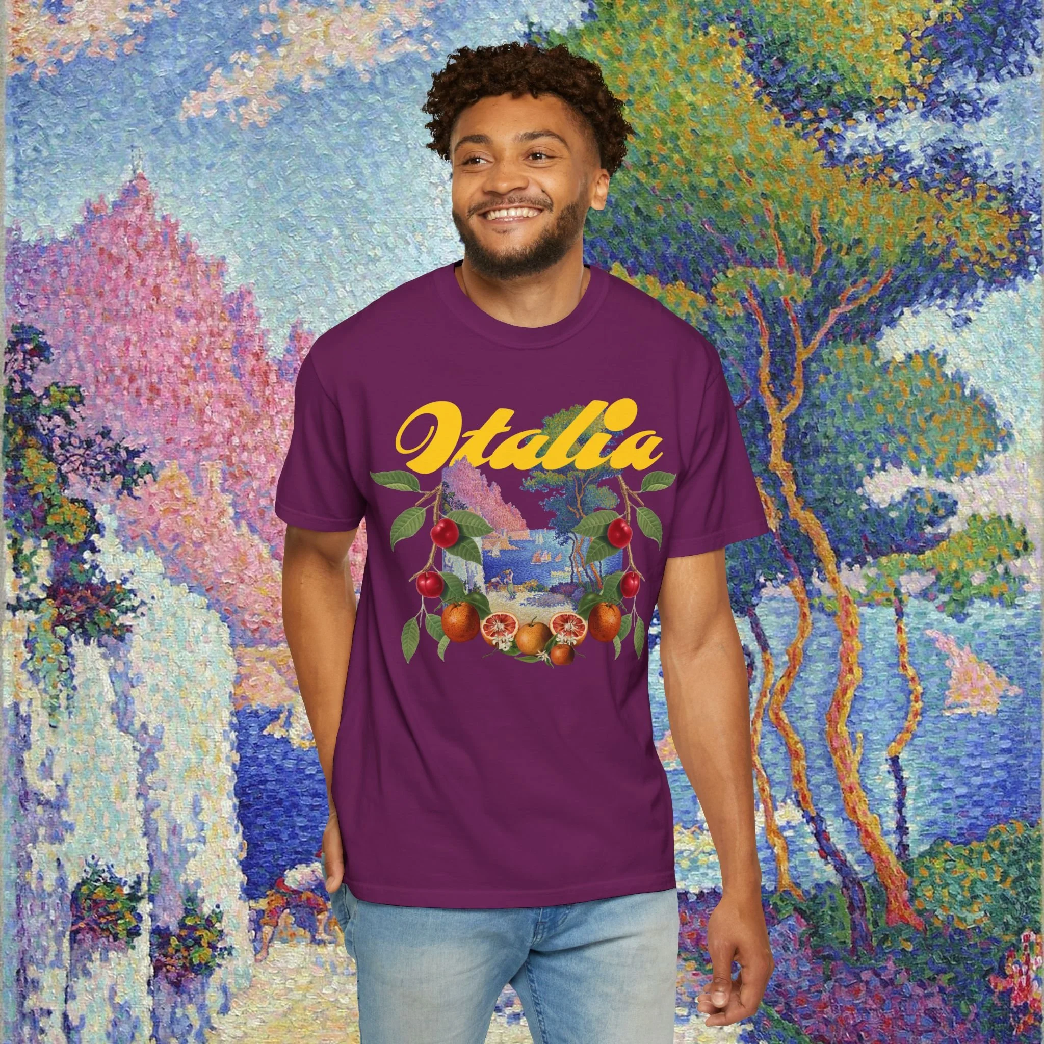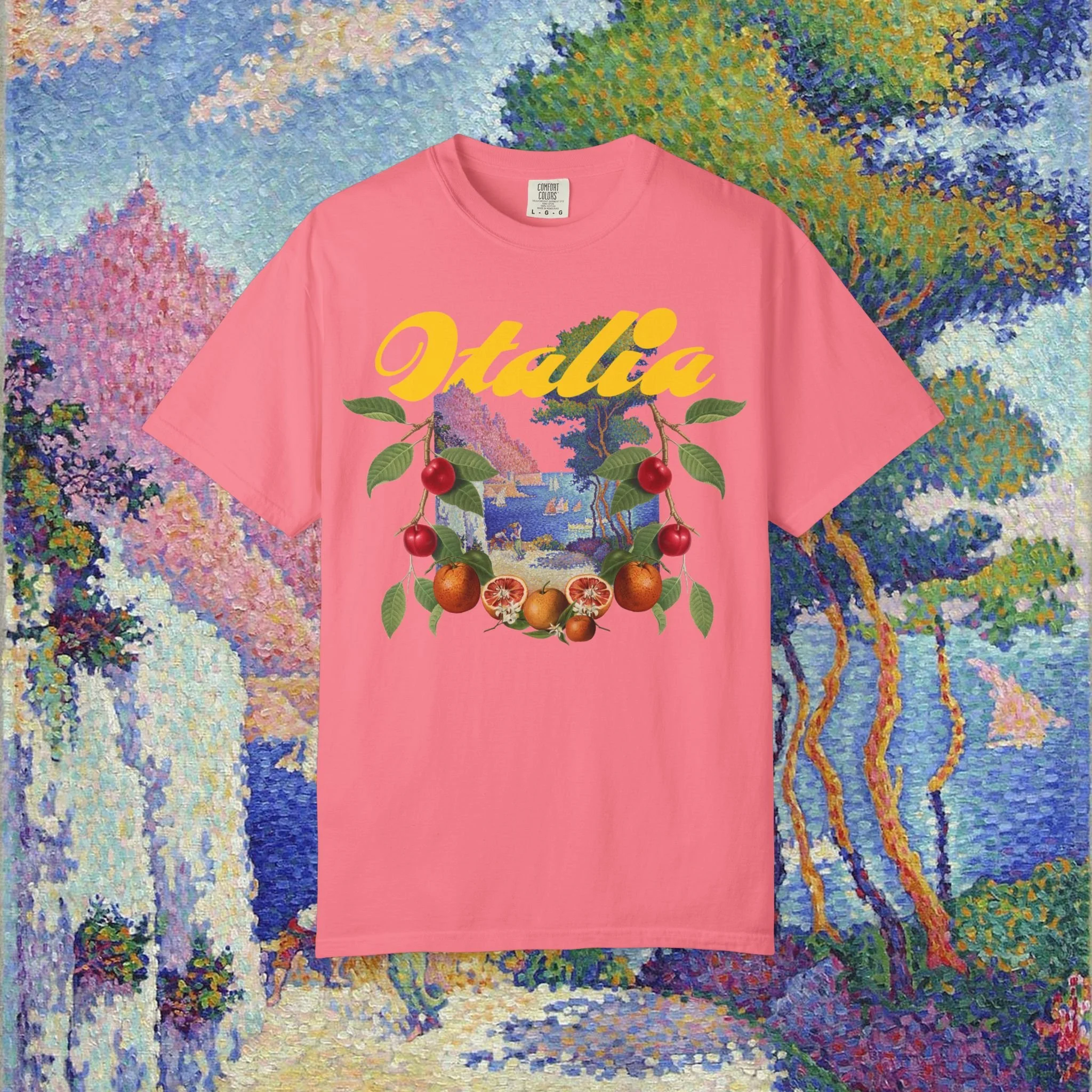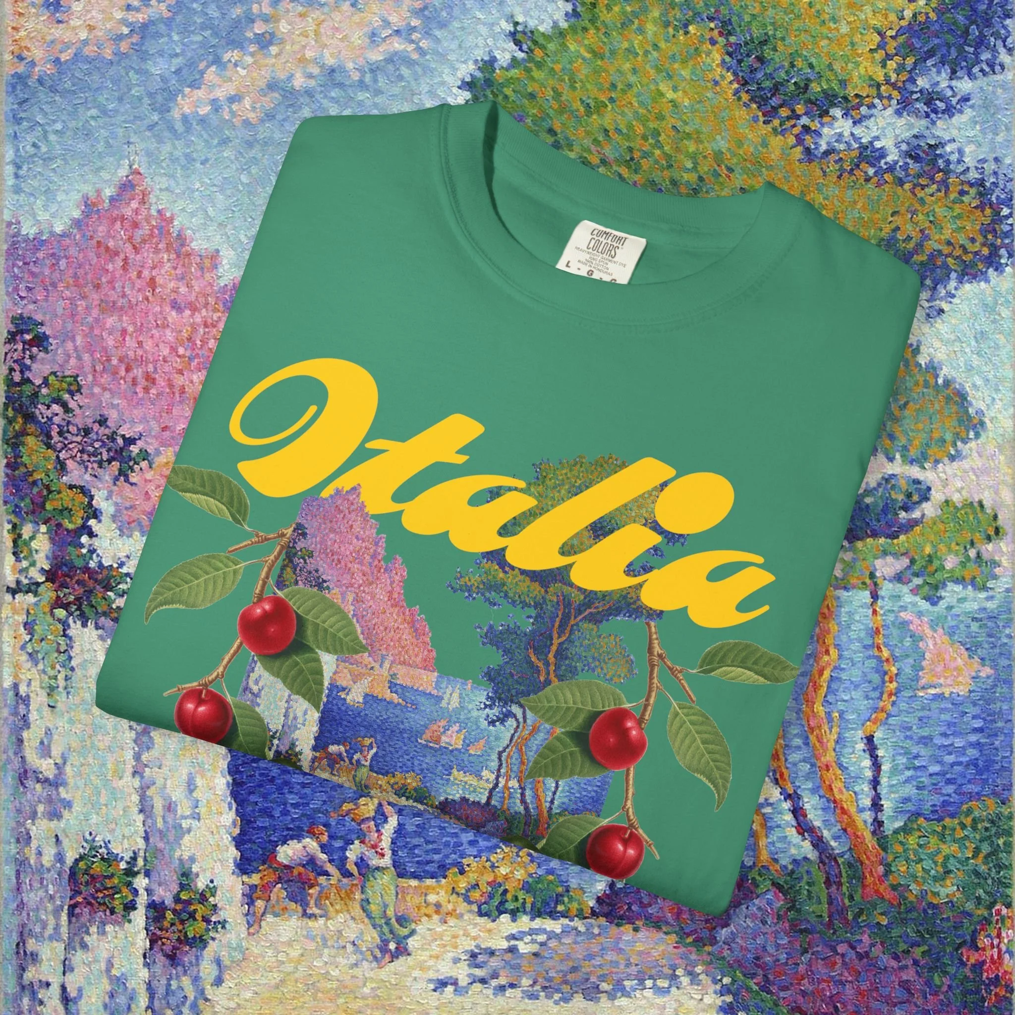 This cute travel shirt with an oil painting design by Paul Signac exudes Mediterranean summer vibes. Perfect for those who love bold and artistic designs, this shirt is ideal for summer outings and vacations. Relevant for those who are looking for a unique and stylish addition to their wardrobe, perfect for casual settings and leisure wear, especially during summer holidays. Product features - Side seams for structural support - Ribbed knit collar for shape retention - Shoulder tape for stability - Sleeve printing with detailed designs - Made with 100% lightweight Airlume combed and ring-spun cotton Care instructions - Machine wash: cold (max 30C or 90F) - Non-chlorine: bleach as needed - Tumble dry: low heat - Iron, steam or dry: medium heat - Do not dryclean