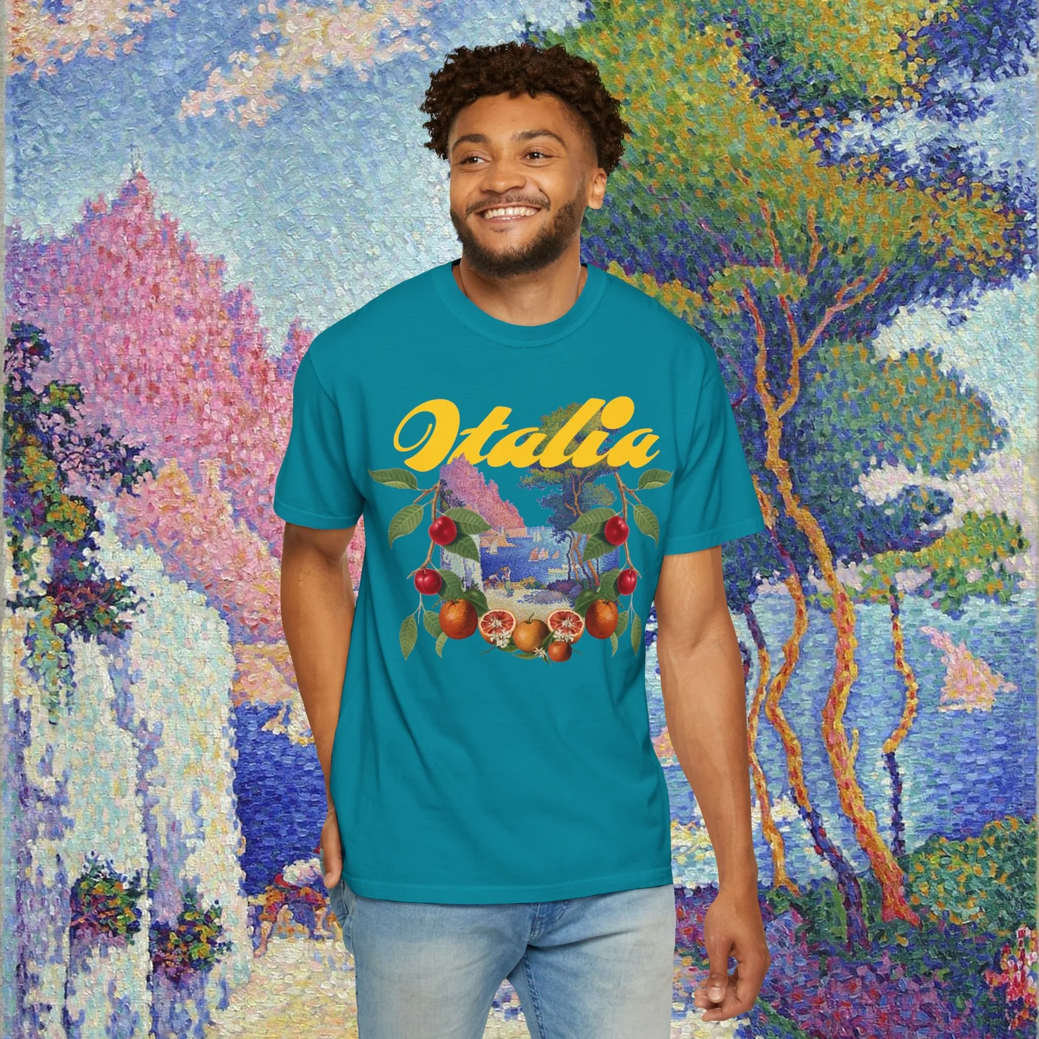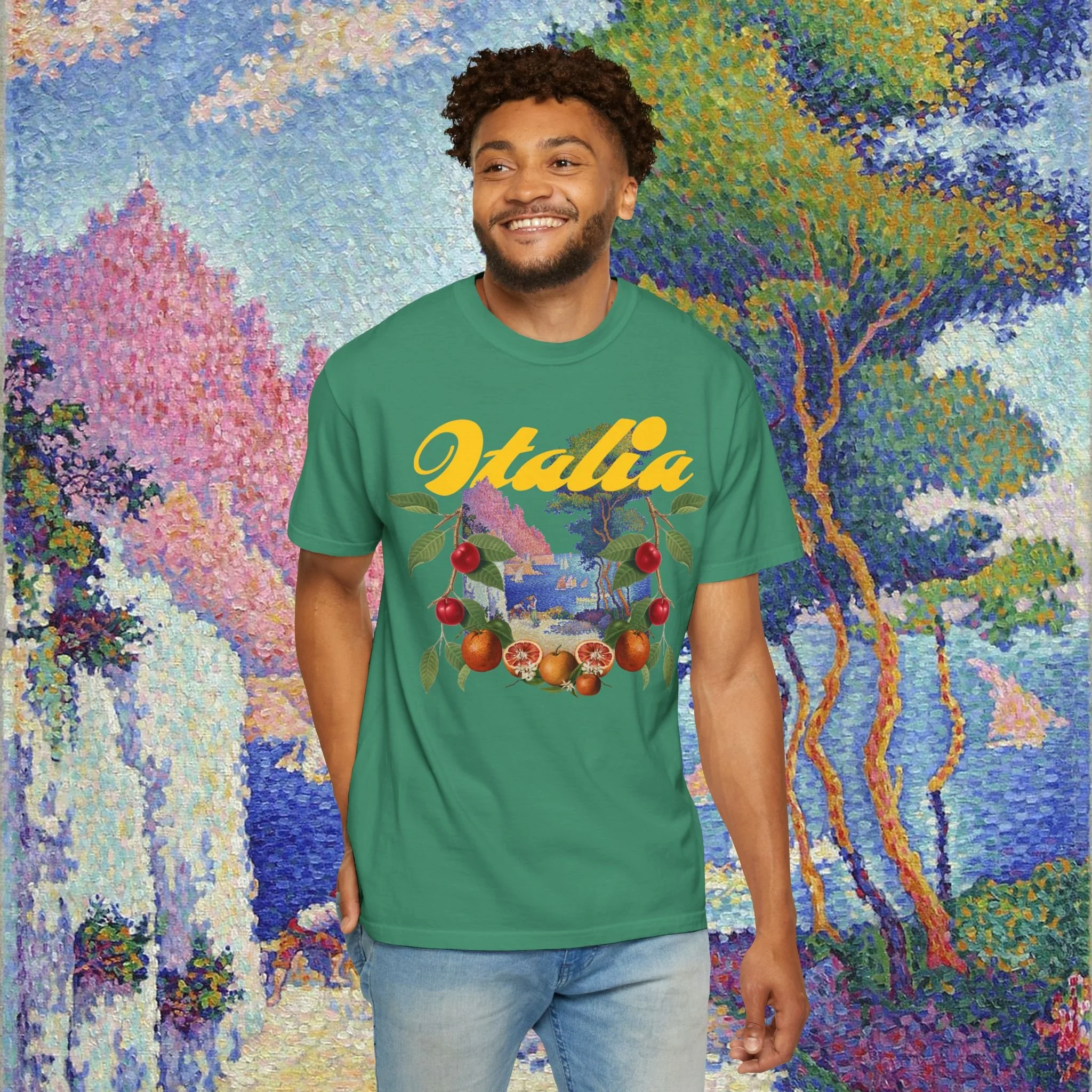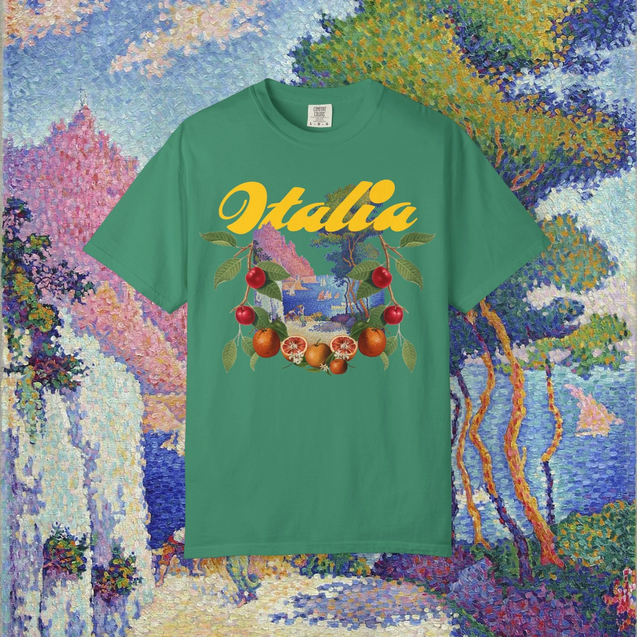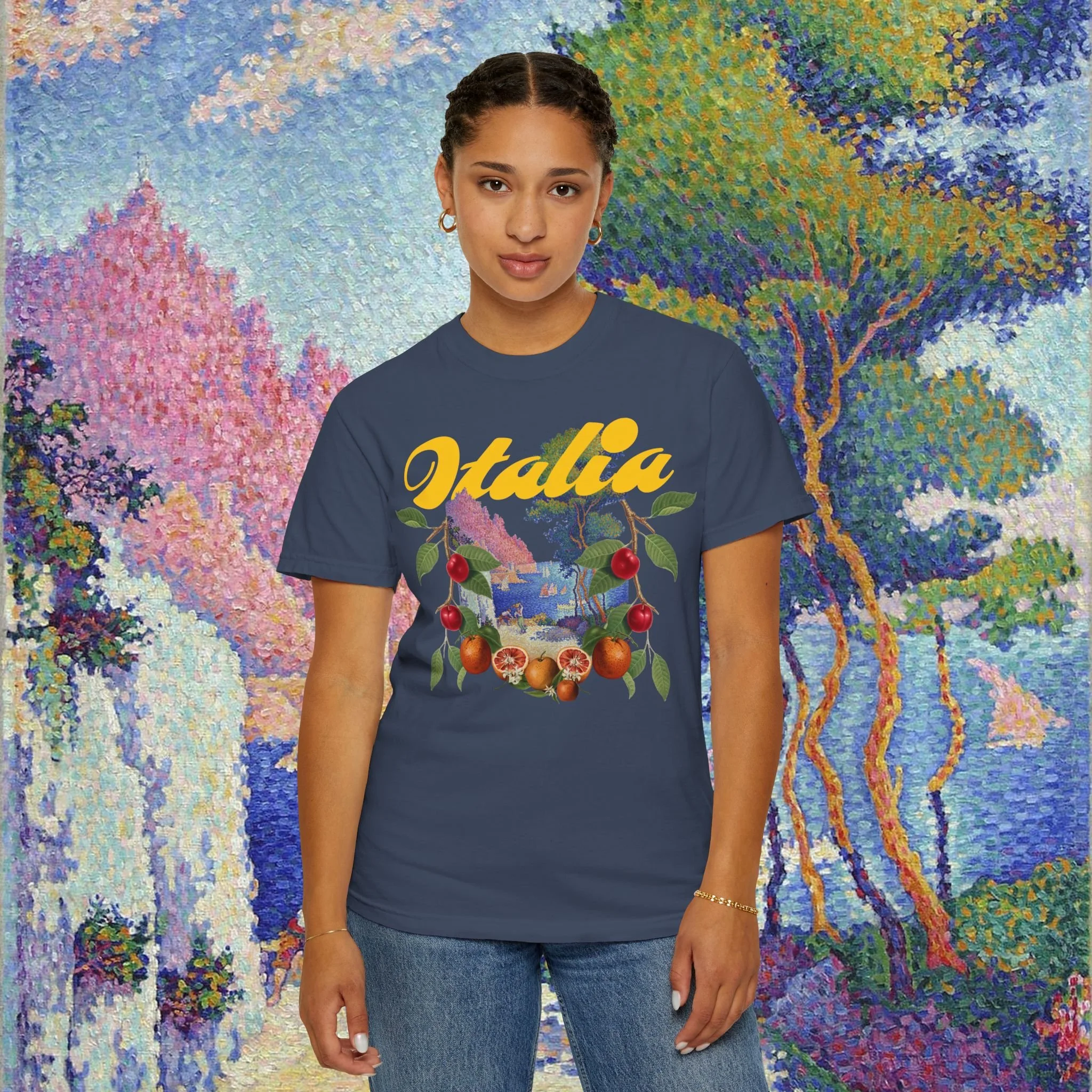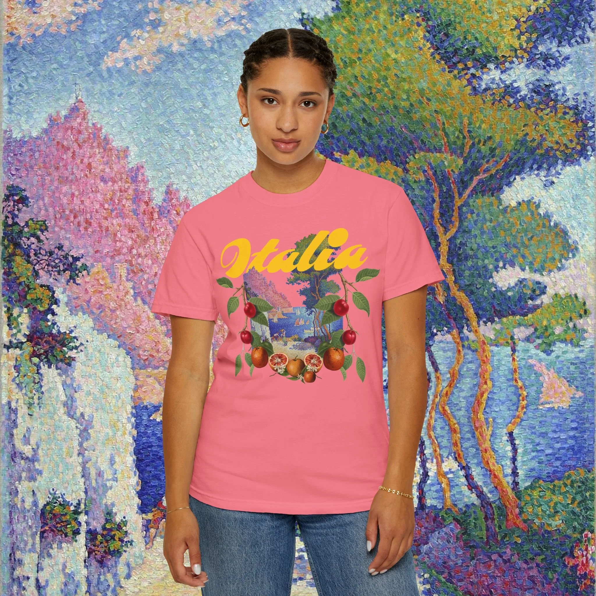 This cute travel shirt with an oil painting design by Paul Signac exudes Mediterranean summer vibes. Perfect for those who love bold and artistic designs, this shirt is ideal for summer outings and vacations. Relevant for those who are looking for a unique and stylish addition to their wardrobe, perfect for casual settings and leisure wear, especially during summer holidays. Product features - Side seams for structural support - Ribbed knit collar for shape retention - Shoulder tape for stability - Sleeve printing with detailed designs - Made with 100% lightweight Airlume combed and ring-spun cotton Care instructions - Machine wash: cold (max 30C or 90F) - Non-chlorine: bleach as needed - Tumble dry: low heat - Iron, steam or dry: medium heat - Do not dryclean